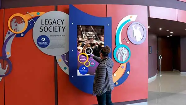 Touch-enabled digital signage displays that let visitors explore donor stories, impact metrics, and giving histories. Perfect for modern donor recognition displays.